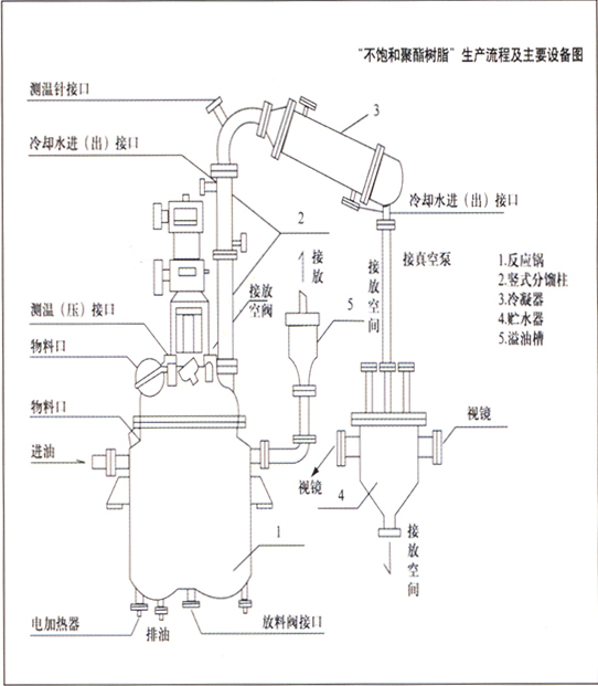 | 本全套裝置是用于生產不飽和聚脂樹脂、酚醛樹脂、環氧樹脂、ABS樹脂、油漆的關鍵設備。全套設備由反應鍋、豎式分餾柱、臥式冷凝器、貯水器、溢油槽、管線(對稀釜)等組成,全套設備與物料接觸部分的采用不銹鋼制作。 |